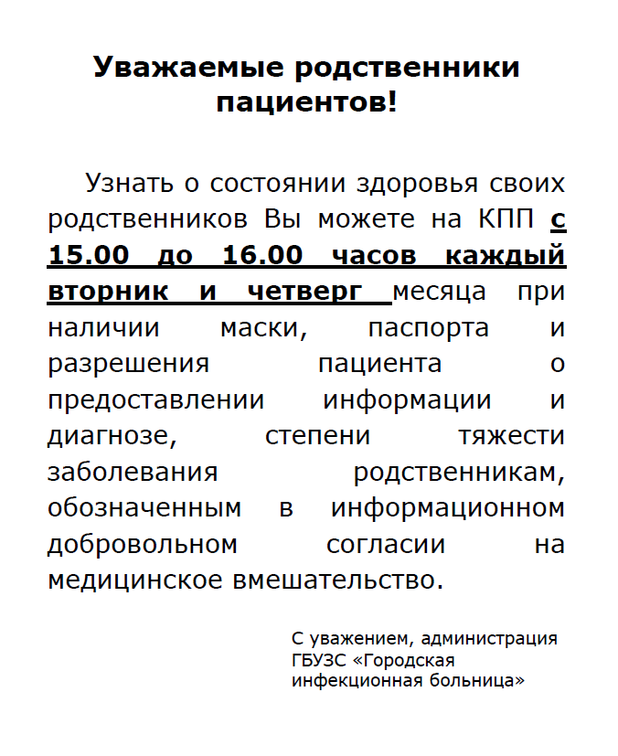 Режим работы ГБУЗС «Городская инфекционная больница»
